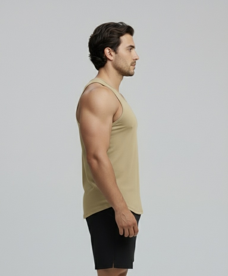 - Tank top confeccionado con tela liviana, una mezcla avanzada de algodón y elastano que añaden gran elasticidad, frescura y funcionalidad.